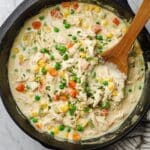 Keywords: chicken pot pie, crustless pot pie, healthy chicken recipe, comfort food, stovetop chicken pot pie, mixed vegetables, creamy chicken dish