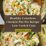 A comforting and healthy Crustless Chicken Pot Pie featuring shredded chicken, mixed vegetables, and a creamy herb-infused sauce. This recipe skips the traditional pie crust for a lighter, protein-packed meal that’s easy to prepare on the stovetop.