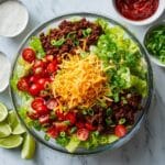 A quick and healthy Taco Salad recipe combining seasoned ground beef with fresh vegetables and classic toppings. This easy-to-make dish delivers bold flavors with a nutritious twist, perfect for a satisfying weeknight meal or light lunch.