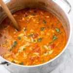 - Finish with Cilantro and Serve: Just before serving, stir in the chopped cilantro. Serve the soup hot with a squeeze of fresh lime juice, extra cilantro, diced avocado slices, and crispy baked whole-wheat tortilla strips or pita chips for added texture and flavor.