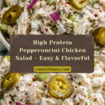 Keywords: high protein chicken salad, pepperoncini chicken salad, healthy chicken salad, Greek yogurt chicken salad, easy no-cook lunch, low fat chicken salad, healthy meal prep