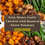 Keywords: Honey Garlic Chicken, Sweet Potato Recipe, One-Pan Dinner, Healthy Chicken Dinner, Baked Chicken and Vegetables