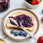This simple and healthy chia seed jam recipe uses fresh berries cooked down and thickened with nutrient-packed chia seeds. Sweetened lightly with maple syrup and brightened with lemon juice, this jam is perfect for spreading on toast, dolloping on yogurt, or mixing into oatmeal. The chia seeds provide natural thickening and add fiber, omega-3s, and protein, making it a wholesome alternative to traditional jams with added sugars and pectin.