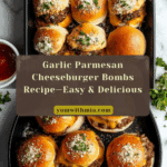 These Irresistible Garlic Parmesan Cheeseburger Bombs are a delicious twist on a classic favorite. Stuffed with cheesy seasoned beef and wrapped in buttery biscuit dough, they make a perfect snack or party appetizer. You’ll love the golden, garlicky crust and melty filling in every bite.