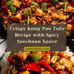 Keywords: Kung Pao Tofu, vegetarian Chinese recipe, spicy tofu stir fry, Szechuan tofu, pan-fried tofu, vegetarian main dish