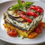This Layered Mediterranean Vegetable Lasagna with Creamy Ricotta is a delicious, hearty vegetarian dish bursting with roasted vegetables and rich cheeses. It’s perfect for a comforting dinner that feels both fresh and indulgent. With layers of eggplant, zucchini, peppers, and three kinds of cheese, this lasagna is sure to become a family favorite.