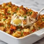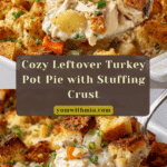 This comforting Leftover Thanksgiving Turkey Pot Pie features a creamy turkey and vegetable filling topped with a golden stuffing crust. Utilizing leftover turkey and stuffing, it’s an easy and delicious way to transform holiday remnants into a hearty new meal perfect for cozy dinners.