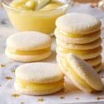 - Assemble the cookies: Spread the chilled lemon filling on the bottom side of half of the cookies. Top with the remaining cookies to create sandwich cookies.