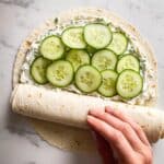 - Prepare ingredients: Chop the fresh dill finely and slice the cucumber thinly and evenly to ensure they roll well inside the tortillas.