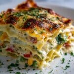 This Loaded Veggie White Lasagna is a deliciously creamy, cheesy casserole layered with tender lasagna noodles, sautéed fresh vegetables, and a rich homemade white sauce. Packed with bell peppers, zucchini, and spinach, combined with ricotta and mozzarella cheeses, this lasagna offers a hearty vegetarian meal perfect for family dinners.
