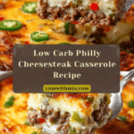 This Low Carb Philly Cheesesteak Casserole offers all the rich flavors of a classic Philly cheesesteak in a comforting, easy-to-make dish. Perfect for a weeknight dinner, it combines ground beef, peppers, onions, and gooey cheeses without the bread.
