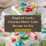This Lucky Charms Sheet Cake is a fun and colorful twist on a classic dessert, featuring the cereal’s signature marshmallows baked right into a moist, fluffy cake. It’s topped with a creamy frosting and decorated with sprinkles for an extra pop of whimsy—perfect for celebrations or a playful treat.