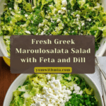 Keywords: Maroulosalata, Greek lettuce salad, feta cheese salad, Greek salad dressing, romaine salad, fresh dill salad, lemon olive oil dressing
