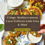 Keywords: Mediterranean corn fritters, feta corn pancakes, Greek yogurt fritters, savory corn snacks, vegetarian appetizers