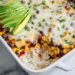 You can replace the chicken with extra beans, diced bell peppers, zucchini, or plant-based meat alternatives to make this casserole vegetarian-friendly.