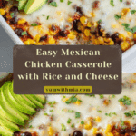 Keywords: Mexican Chicken Casserole, Chicken and Rice Bake, One Dish Mexican Dinner, Cheesy Chicken Casserole, Easy Mexican Casserole