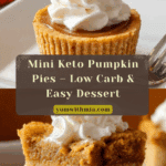 Keywords: keto pumpkin pie, mini pumpkin pie, keto dessert, low carb pumpkin pie, sugar free pumpkin pie, keto holiday dessert, almond flour crust, keto whipped cream