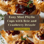 These Mini Phyllo Cups with Brie, Pecans, and Cranberry Drizzle are a perfect bite-sized appetizer for any gathering. The combination of creamy Brie, crunchy toasted pecans, and sweet-tart cranberry sauce creates a delightful balance of flavors that’s sure to impress your guests.