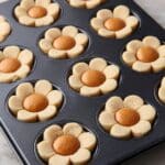 - Fit Dough into Muffin Pan: Place each flower-shaped dough piece into the mini muffin tin, leaving space between them. Press the dough gently into the bottom and up the sides to form mini pie shells.