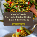 Mom’s Marinated Salad is a refreshing and tangy vegetable salad featuring green beans, peas, sweet corn, pimentos, and crunchy celery, all tossed in a sweet and zesty homemade dressing. This make-ahead salad is perfect for potlucks, picnics, or as a vibrant side dish to any meal. With a balance of crisp vegetables and flavorful marination, it offers a delightful taste and texture combination enjoyed chilled.