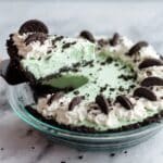 Keywords: no bake cheesecake, mint chocolate chip cheesecake, grasshopper dessert, easy cheesecake recipe, no bake mint dessert, Oreo crust cheesecake