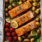 This Olive & Mango-inspired salmon sheet pan dinner is a vibrant, easy-to-make meal perfect for busy weeknights. Featuring tender salmon, crispy baby potatoes, fresh asparagus, and juicy cherry tomatoes, it’s both flavorful and nutritious.