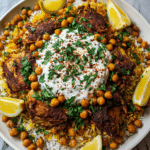 This One Pot Shawarma Chicken and Rice recipe combines tender, spice-rubbed chicken thighs with fragrant basmati rice and chickpeas, all cooked together in a single pot for a flavorful, effortless meal inspired by Middle Eastern shawarma flavors. The dish features a warm blend of cumin, coriander, smoked paprika, turmeric, and cinnamon, making it perfect for a cozy dinner or meal prep.