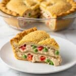 Store any leftover chicken pot pie covered in the refrigerator for up to 3 days. To reheat, warm individual slices in the oven at 350°F (175°C) for about 15 minutes until heated through to keep the crust crisp. Avoid microwaving if possible, as it may make the crust soggy.