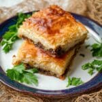 Egyptian Goulash, or Phyllo Meat Pie, is a savory layered pastry made with crispy phyllo dough and a spiced ground beef filling. This classic Egyptian dish features aromatic baharat and garlic powder seasoning, baked to golden perfection for a deliciously flaky and flavorful pie. Perfect as a comforting main course served warm alongside a fresh salad.
