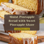 This Pineapple Bread is a moist and flavorful quick bread featuring the natural sweetness of crushed pineapple and a delicate pineapple syrup glaze. Perfect for breakfast, a snack, or dessert, this loaf combines buttery richness with fruity brightness in every bite.
