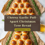 This Pull-Apart Cheesy Garlic Christmas Tree Bread is a festive and fun appetizer perfect for holiday gatherings. Soft jumbo biscuit dough stuffed with gooey mozzarella cheese is shaped into a Christmas tree, baked until golden, and brushed with a flavorful garlic butter seasoning. Ideal for sharing, this bread pairs wonderfully with marinara or pesto sauce for dipping.
