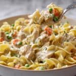 Keywords: chicken pot pie pasta, creamy chicken pasta, quick chicken dinner, one-pot pasta, comfort food