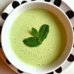 A refreshing and nutritious raw cream of spinach soup made by blending fresh spinach, mint, oats, apple, avocado, and non-dairy milk for a smooth, savory green thickie that’s perfect for a light meal or snack.