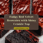 Keywords: red velvet brownies, fudgy brownies, chocolate brownies, easy brownies recipe, red food gel brownies, shiny crinkle top brownies