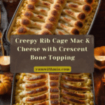 Rib Cage Mac & Cheese (Crescent Bone Edition) is a fun and creative twist on a classic comfort food. This cheesy macaroni bake features crescent roll dough shaped like ribs, adding a playful and delicious touch perfect for gatherings or themed dinners.