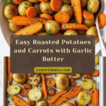 Roasted potatoes and carrots make a simple, comforting side dish that pairs well with almost any meal. With a flavorful garlic herb butter coating, these vegetables roast to tender perfection and develop a delicious, caramelized exterior.