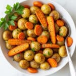Keywords: roasted potatoes, roasted carrots, garlic herb butter, side dish, easy roasting vegetables, creamer potatoes, oven roasted vegetables