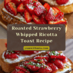 This Roasted Strawberry Whipped Ricotta Toast combines the natural sweetness of slow-roasted strawberries with creamy, fluffy ricotta cheese spread over toasted crusty bread. Enhanced with honey, balsamic vinegar, and fresh thyme, this elegant toast offers a perfect balance of flavors and textures, ideal for breakfast, brunch, or a light snack.