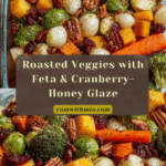 This colorful medley of roasted butternut squash, carrots, broccoli, and Yukon gold potatoes is elevated with a tangy cranberry-honey glaze. Topped with creamy feta and crunchy pecans, it makes a vibrant, flavorful side dish or a satisfying vegetarian main.