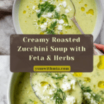 This Roasted Zucchini Soup is a creamy, flavorful dish made by roasting zucchini, onion, herbs, and garlic alongside a block of feta cheese. The roasting caramelizes the vegetables and feta, creating a rich and savory base that’s blended smooth with broth. Served warm or chilled, and garnished with fresh dill and feta crumbles, this soup offers a delicious way to enjoy fresh summer produce with a Mediterranean twist.