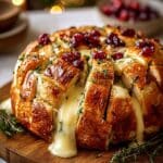 This Rustic Sourdough Loaf with Brie and Cranberry is a perfect combination of creamy cheese, sweet cranberry, and fragrant herbs baked into a crusty loaf. It’s an effortless yet impressive dish ideal for festive gatherings or cozy nights in.