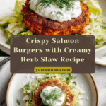 These Salmon Burgers with Slaw are a delightful combination of crispy, flavorful salmon patties paired with a creamy, tangy cabbage slaw. Perfect for a quick lunch or dinner, these burgers use simple ingredients like canned salmon, fresh herbs, and Greek yogurt to create a refreshing and healthy meal that’s easy to prepare and satisfying.