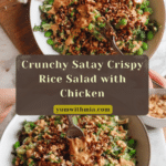A vibrant and crunchy Satay Crispy Rice Salad featuring crispy oven-toasted rice, tender chicken, fresh herbs, and an irresistibly creamy peanut satay dressing. This dish balances textures and flavors perfectly, offering a delightful fusion of Asian-inspired ingredients for a satisfying and colorful meal.