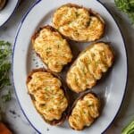 Store leftover Shepherd’s Pie Twice Baked Potatoes in an airtight container in the refrigerator for up to 3 days. Reheat in the oven at 350˚F (175˚C) until heated through, about 15-20 minutes, to keep the topping crisp. Avoid microwaving to maintain texture.