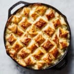 This Skillet Chicken Pot Pie Recipe combines a creamy, savory chicken and vegetable filling cooked in a cast-iron skillet topped with flaky puff pastry squares baked to golden perfection. The recipe delivers comfort food with tender shredded chicken, tender carrots, celery, peas, and a flavorful herb-infused gravy, all finished with a crisp puff pastry crust.