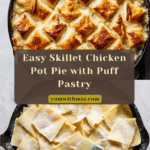 Keywords: chicken pot pie, skillet chicken pot pie, puff pastry chicken pot pie, comfort food, easy chicken recipe