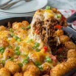 It’s best to use an oven-safe skillet so you can transfer the dish directly to the oven without extra steps. If you don’t have one, you can cook the beef mixture in a regular skillet, then transfer to a baking dish before topping with tater tots and baking.