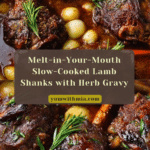 This slow-cooked lamb shanks recipe features tender, fall-off-the-bone meat simmered in a rich herb-infused gravy made with red wine, aromatic vegetables, and fresh herbs. Perfect for a comforting and elegant meal, it pairs beautifully with mashed potatoes, creamy polenta, or crusty bread.