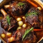 - Serve: Pour the herb-infused gravy over the lamb shanks. Garnish with fresh rosemary sprigs and serve alongside mashed potatoes, creamy polenta, or crusty bread for a hearty, comforting meal.