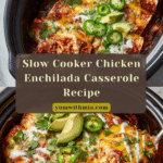 This Slow Cooker Chicken Enchilada Casserole is a comforting, flavorful meal that’s perfect for busy days. Tender chicken simmers in a rich, spicy sauce with beans and cheese, making it ideal for a hands-off dinner. Serve it over rice for a complete, satisfying dish.